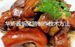 酱焖猪蹄,家常菜之一;是采用猪蹄、酒、豆瓣酱等原料制作而成美味佳肴,营养丰富,猪蹄又称猪脚,中医称其性平、味甘咸,入胃经,为滋补之品,有补虚弱,填肾精,健腰膝等功能。华炬新产品研究所技术咨询委员会科研人员现推荐一项酱焖猪蹄制作技术方法,该技术的特点是口味软烂鲜香,且猪蹄里面含有胶原蛋白,而且还有美容养颜的功效,现将该酱焖猪蹄制作技术方法及实施例介绍如下供研究参考:(311211  324459