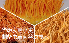 华炬科技新产品研究所技术咨询委员会科研人员现推荐一项发芽小麦制备虫草菌丝块技术方法,该技术用发芽小麦作为原料,用玉米粉和糖制备不含无机盐的营养液,用虫草液体菌种作为菌种并接入由发芽小麦和不含无机盐营养液组成的生产用培养基中,最后培养至虫草菌丝将培养基交织连接成块得发芽麦粒虫草菌丝块成品。通过实施所用的发芽小麦是用普通小麦经过发芽处理后,使其营养成分发生富集性变化。虫草菌丝与发芽小麦形成另一个特色的结合体——发芽小麦虫草菌丝块,使其不但在营养、功能及功效会更加突出,而且产品的形态美、新颖、特色,口感佳等将是人们消费的新宠;小麦也由此增值数十倍。具有培育周期短、生产制备工艺简单、产品的生产成本低、产品的生产效率高及稳定等特点,现将该发芽小麦制备虫草菌丝块技术方法及实施例介绍如下供研究参考:(441271 821454)