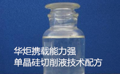 华炬新产品研究所技术咨询委员会科研人员现推荐一项携载能力强单晶硅切削液技术配方,该技术切削液无毒无异味、不挥发、不易燃、化学性能稳定,主要用于单晶硅等半导体材料的多线切割,具有携载能力强、高悬浮、高润滑、易清洗等特点,现将该携载能力强单晶硅切削液技术配方及实施例介绍如下供研究参考:(811511 231549)