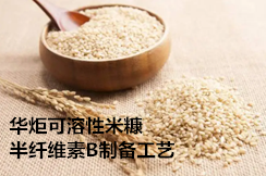华炬新产品研究所技术咨询委员会科研人员现推荐一项可溶性米糠半纤维素B制备工艺方法,该技术方法生产的可溶性米糠半纤维素B具有纯度高、杂质少、无异味等特点,与市售的可溶性米糠半纤维素B相比,在纯度和产品质量上提高了一个档次,是可溶性米糠半纤维素系列产品中的精品,该精品使用户更易接受,使消费者更加安全、健康,具有更高的使用价值和更广阔的应用领域,现将该可溶性米糠半纤维素B制备工艺方法及实施例介绍如下供研究参考:(211211 255458)