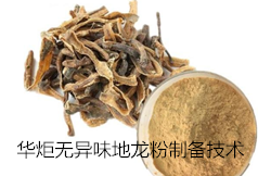华炬科技新产品研究所技术咨询委员会科研人员现推荐一项无异味地龙粉制备技术方法,该技术无异味地龙粉的制备方法,在保持地龙原有疗效的前提下,口服异味小,口感好,病人的顺应性高,现将该无异味地龙粉制备技术方法及实施例介绍如下供研究参考:(441231 843229)