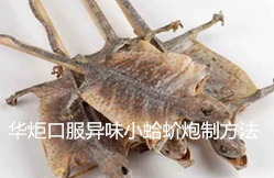 华炬科技新产品研究所技术咨询委员会科研人员现推荐一项口服异味小蛤蚧炮制方法,该技术制得的蛤蚧疗效好,口服异味小,口感好,病人的顺应性高,蛤蚧壮阳效果最好,现将该口服异味小蛤蚧炮制方法及实施例介绍如下供研究参考:(441271 823367)