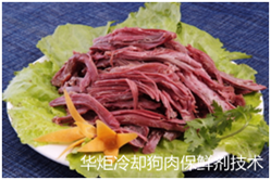 冷却狗肉因其安全性和营养性均优于冷冻狗肉和热鲜狗肉而越来越受到消费者的欢迎,但在低温的冷藏条件下,一些嗜冷菌和酶仍然具有相当强的活力,因此容易导致冷却狗肉的腐败肉质,如何提高冷却狗肉的货架期是我国肉类工业长期以来亟待解决的问题。 华炬新产品研究所技术咨询委员会技术人员现推荐一项冷却狗肉保鲜剂技术配方,该技术产品的使用保鲜时间长、品质控制好、保鲜效果好,且对人体无任何副作用, 成本低,操作简单。是一种效果好、成本低、使用方便的冷却肉类复合保鲜剂。现将该冷却狗肉保鲜剂技术配方介绍如下供研究参考:(311611 313255)