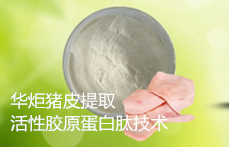 华炬新产品研究所技术咨询委员会科研人员现推荐一项猪皮提取活性胶原蛋白肽技术方法,该技术与现有技术相比的有益效果是:获得的猪皮胶原蛋白肽产品纯度高,风味良好,无腥异味;生产周期短,大大降低了胶原蛋白肽制备的生产成本;反应条件温和,保持了胶原的生物活性;产品安全性高,可广泛应用于功能性食品、护肤品、药品等领域,现将该猪皮提取活性胶原蛋白肽技术方法及实施例介绍如下供研究参考:(311211 346312)
