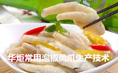 华炬新产品研究所技术咨询委员会科研人员现推荐一项常用泡椒凤爪生产技术方法,该技术的有益效果如下:该技术成本较低、操作简单、适合广泛推广,由于该泡椒凤爪的制作方法采用了合理的步骤及条件,所以能够制作出营养美味的泡椒凤爪,且制作步骤少、易操作,因此本发明方法简单、易操作,制作出的泡椒凤爪营养美味是一种食用更加安全、质量优的泡椒凤爪的生产工艺,现将该常用泡椒凤爪生产技术方法及实施例介绍如下供研究参考:(311311 333563)