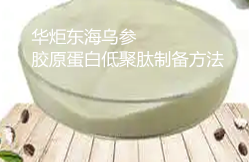 华炬新产品研究所技术咨询委员会科研人员现推荐一项东海乌参胶原蛋白低聚肽制备方法,该技术制备方法生产周期短,得率高,产品纯度高,具有显著的抗氧化性,可溶性好,吸收性高,无异味和苦味;使海参得到充分的高值化加工利用,大大提高胶原蛋白低聚肽(分子量<1000Da)收率,最大收率可达80%以上,现将该东海乌参胶原蛋白低聚肽制备方法及实施例介绍如下供研究参考:(341411 375357)