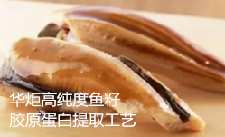 华炬新产品研究所技术咨询委员会科研人员现推荐一项高纯度鱼籽胶原蛋白提取工艺方法,该技术与现有技术相比提供的鱼籽中胶原蛋白的提取方法,不仅扩展了胶原蛋白的来源,而且提取的胶原蛋白色泽和纯度较高,没有异味,能够将废弃的鱼籽进行有效地加以利用,变废为宝,现将该高纯度鱼籽胶原蛋白提取工艺方法及实施例介绍如下供研究参考:(341211 631385)