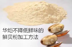 华炬新产品研究所技术咨询委员会科研人员现推荐一项不降低鲜味的鲜贝粉加工方法,该技术具有以下有益效果:1、选取新鲜完整的贝类进行加工,优选原料,保留了贝类的有效成分和特殊风味,制成的贝粉口感鲜美,海鲜风味浓郁。2、采用了粉碎技术,直接将贝类粉碎,增大了其与酶制剂的接触面积,提高了酶解反应的速度,节约酶的用量。3、添加葡萄糖和木糖,可以为微生物发酵提供优质的碳源和氮源,不会出现微生物消耗呈味物质的现象。4、产品中钠含量低,呈味肽和呈味氨基酸含量较高。5、产品包装后可长时间保鲜不降低鲜味,现将该不降低鲜味的鲜贝粉加工方法及实施例介绍如下供研究参考:(341371 323336)