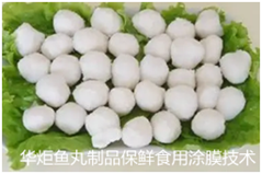 涂膜保鲜技术就是在鱼丸表面涂上一层高分子的液态膜,干燥后成为一层很均匀的膜,可以隔离鱼丸与空气进行气体交换,改善了鱼丸的硬度和新鲜饱满程度,并减少病原菌的侵染而造成的鱼丸变质,保持鱼丸良好的质构和风味,达到较长的保质期的目的。华炬新产品研究所技术咨询委员会技术人员现推荐一项鱼丸制品保鲜食用涂膜技术配方,该技术产品的使用对鱼丸的风味品质保藏具有积极作用,能很好的延长鱼丸制品的货架期,对鱼丸制品进行低温储藏保鲜,其工艺简单、成本低廉,符合食品安全要求,现将该鱼丸制品保鲜食用涂膜技术配方介绍如下供研究参考:(341211 323355)