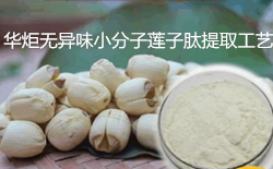 华炬新产品研究所技术咨询委员会科研人员现推荐一项无异味小分子莲子肽提取工艺方法,该技术对于现有技术有显著提高了小分子肽的提取率,酶解产物中肽含量达90%以上,氨基酸含量低于10%,肽产物中80%以上是180~500道尔顿的小分子肽,经过纳滤除去少量大分子物质及小分子的盐和氨基酸后,产物中小分子肽的含量可高达98%以上,可完全溶于水,且产品口感好,无异味,无苦味,可广泛应用于食品、保健品、药品等领域,现将该无异味小分子莲子肽提取工艺方法及实施例介绍如下供研究参考:(211371 422346)