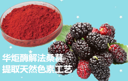 华炬科技新产品研究所技术咨询委员会科研人员现推荐一项酶解法桑葚提取天然色素工艺方法,该技术解决了现有技术中存在的从桑葚中提取色素的利用率低,造成了资源浪费的问题,色素提取工艺过程简单,色素提取率高,桑葚的利用率高,大大减少了资源浪费,而且提取过程中不添加其他添加剂,绿色安全无污染,可作为食用色素,现将该酶解法桑葚提取天然色素工艺方法及实施例介绍如下供研究参考:(311411 227343)