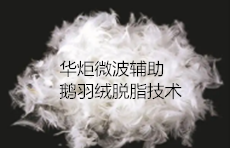 华炬新产品研究所技术咨询委员会科研人员现推荐一项微波辅助鹅羽绒脱脂技术方法,该技术具有以下有益效果:通过微波辅助脱脂工艺,可以快速高效去除羽绒中的油脂含量,降低羽绒中残存的油脂含量;此外,微波辅助加热能够降低羽绒脱脂的能耗,以及减少羽绒脱脂的加工时间和加工成本,现将该微波辅助鹅羽绒脱脂技术方法及实施例介绍如下供研究参考:(311371 423351)
