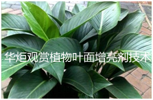 观赏树木、花卉等观赏植物的摆放过程中,由于摆放时间较长,植株表面容易吸附大量灰尘;同时温湿度调节不到位和养护措施不利导致植株长势衰弱,叶片暗淡无光,观赏价值降低。华炬新产品研究所技术咨询委员会科研人员现推荐一项观赏植物叶面增亮剂技术配方,该技术产品该观赏植物用增亮剂,不仅能快速有效清除叶片表面的灰尘污渍,也能增加叶片表面亮度,有效保证植物叶片的观赏性,现将该观赏植物叶面增亮剂技术配方及实例介绍如下供研究参考:(271521 451345)