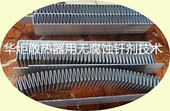 铜散热器一直以其高的散热效率、良好的优越性以及可修复性仍被广泛用于要求高或特种车辆或工程机械中。但是,传统工艺生产铜散热器用的钎剂往往具有一定的腐蚀性,从而降低散热器的使用寿命。
