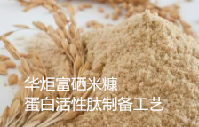 华炬新产品研究所技术咨询委员会科研人员现推荐一项富硒米糠蛋白活性肽制备工艺方法,该技术的有益效果为:本发明充分、高效和高值化的利用了米制品加工的副产物——米糠-,最终制得了产值显著增加的功能性多肽。不仅如此,选取富硒米糠,从而制得的多肽中硒含量是一般米糠蛋白多肽的数十倍。采用酶法制备富硒米糠蛋白,相较于常用的碱法制备,提取率和纯度更高。为进一步提高了产品纯度,经醇沉多糖类物质,优选大孔树脂进行脱色和脱臭处理,效果显著。制备得到的富硒米糠蛋白多肽粉具有色泽均匀、白度高、硒含量高、粘性低等优良特性,能够用于保健食品等相关领域,现将该富硒米糠蛋白活性肽制备工艺方法及实施例介绍如下供研究参考:(211211 255334)
