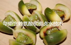 华炬科技新产品研究所技术咨询委员会科研人员现推荐一项含赖氨酸槟榔卤水技术,该技术制备的卤水粘度低、扩散性好,卤水与槟榔内表面接触面大,在点 卤后其碱性向槟榔半成品内表面纤维层扩散的速度快,能在短时间内达到中和 平衡,平衡后其内表面的pH在6~9,这样就可以用相对少的点卤量和少量L‐ 赖氨酸碱而达到要大量石灰才能起到的效果,而且不存在局部碱性过高的缺点,现将该含赖氨酸槟榔卤水技术及实施例介绍如下供研究参考:(441321 531318)