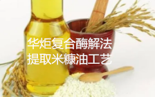 华炬新产品研究所技术咨询委员会科研人员现推荐一项复合酶解法提取米糠油工艺,该技术的有益效果是: (1)米糠油的精炼提纯方法操作简单易行、生产能耗低、出油率高,且脱色除杂效果好,有效降低成品米糠油中的杂质含量,从而提高成品米糠油的品质,进而增强市场竞争力; (2)通过复合酶的使用以有效提高对米糠中油脂的提取得率,缩短有机溶剂浸提时间,从而降低浸提能耗,现将该复合酶解法提取米糠油工艺及实施例介绍如下供研究参考:(211211 255339)