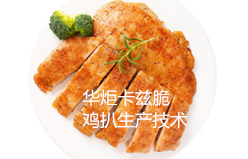 华炬新产品研究所技术咨询委员会科研人员现推荐一项卡兹脆鸡扒生产技术方法,该技术与现有技术相比具有如下有益效果:方法加工出的卡兹脆鸡扒浆和粉用量少,出成率高,肉质细嫩、口感好,加工效率高,成本低,使用模具定型,上粉效率高,形状好,现将该卡兹脆鸡扒生产技术方法及实施例介绍如下供研究参考:(311311 435316)