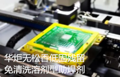 华炬新产品研究所技术咨询委员会科研人员现推荐一项无松香低固残留免清洗溶剂型助焊剂,该技术具有如下特点:1.无卤化物,无毒,不会产生刺激性气味,对人体和自然环境不会产生危害,大幅度降低了对电路板的腐蚀性;2.活性高,其助焊效果明显,有较好的润湿性,焊点圆满无回缩,无炸锡现象,适合高集成度封装且制备方法简单,勿需引起其它辅助设备;3.电路板表面极低残留,焊点美观,光亮,勿需引进清洗工艺;4.适用窗口宽,通用性好,对Sn-Ag、Sn-Cu系或是低银无铅钎料合金,现将该无松香低固残留免清洗溶剂型助焊剂及实施例介绍如下供研究参考:(841131 527326)