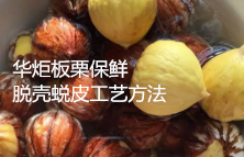 华炬新产品研究所技术咨询委员会科研人员现推荐一项板栗保鲜脱壳蜕皮工艺方法,该技术较之于传统工艺其突出效果为:该方法注重对板栗产品脱壳蜕皮操作环境及工艺的改善、管控,有效保持了板栗果仁产品的色泽及原味新鲜感,提高了产品后期再加工或长途运输的保鲜能力,并且加工成本得以有效降低,现将该板栗保鲜脱壳蜕皮工艺方法及实施例介绍如下供研究参考:(241341 233325)