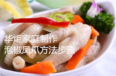 鸡爪的营养价值颇高,含有丰富的钙质及胶原蛋白,多吃不但能软化血管,同时具有美容功效。科研人员发现,鸡爪中含有四种蛋白质成分能够有效抑制高血压。因此,以鸡爪为原料制作出来的食品越来越受人们的欢迎。华炬新产品研究所技术咨询委员会科研人员现推荐一项家庭制作泡椒凤爪方法步骤,该技术制作过程无任何添加剂,通过沸水煮能起到消毒、入味的特点,黄酒延长鸡脚的储存时间,浸泡入味让味道更好的渗透,能够制作出营养美味的泡椒凤爪,且制作步骤少、易操作,方法简单、易操作,制作出的泡椒凤爪营养美味,现将该家庭制作泡椒凤爪方法步骤及实施例介绍如下供研究参考:(311311 333326)