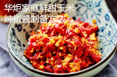 华炬新产品研究所技术咨询委员会科研人员现推荐一项家庭鲜甜玉米辣椒酱制备方法,该技术具有如下优点:1、所提出的辣椒酱其原料结构组成构思新颖、制作工艺简单。2、通过辣椒酱里添加有鲜甜玉米粒,在食用辣椒酱时夹带有甜脆劲爽的玉米粒,使辣椒酱的味道及品质都得以增值。3、制备出来的辣椒酱,不但香辣宜人,而且还夹带有甜脆劲爽的玉米粒。同时,辣椒酱色彩程红、黄、白三种颜色相间,色泽鲜艳,使人有一种强烈的食欲感。4、制备出来的辣椒酱不但营养价值高,而且实现了一品多味,现将该家庭鲜甜玉米辣椒酱制备方法及实施例介绍如下供研究参考:(211341 215322)