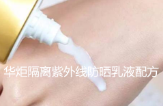 防晒是指纺织人的皮肤经过长期日光暴晒后出现的不正常现象。它包括阳光晒到真皮层以后的起皱、增厚以及引起日光皮炎,症状是暴晒部位的皮肤出现鲜红色斑,有时会起泡、肿胀和蜕皮,更严重时还会引起皮肤癌。华炬科技新产品研究所技术咨询委员会科研人员现推荐一项隔离紫外线防晒乳液配方,该技术的技术效果在于:能够有效的吸收紫外线,具有良好的隔离紫外线的效果,同时补充表皮营养,不油不腻,现将该隔离紫外线防晒乳液配方及实施例介绍如下供研究参考:(411611 225315)