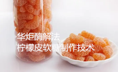 华炬新产品研究所技术咨询委员会科研人员现推荐一项酶解法柠檬皮软糖制作技术方法,该技术制得到的柠檬皮软糖具有颗粒感,口感酸甜,无苦涩感,入口易嚼,具有柠檬清香,保存6个月以内不会出现硬化、褐变、黑变现象,现将该酶解法柠檬皮软糖制作技术方法及实施例介绍如下供研究参考:(241441 453326)