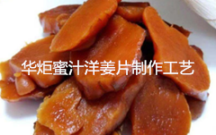 华炬新产品研究所技术咨询委员会科研人员现推荐一项蜜汁洋姜片制作工艺方法,该技术有益效果:产品色泽金黄、姜味浓郁、清甜可口,具有洋姜独特的风味。本产品富含淀粉和菊糖,可以降低血糖,改善体内的脂肪平衡,还具有祛寒暖胃、健脾活血的功效,是一种不可多得的低热量、低糖、低脂的保健食品,现将该蜜汁洋姜片制作工艺方法及实施例介绍如下供研究参考:(211371 265306)
