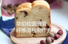华炬新产品研究所技术咨询委员会科研人员现推荐一项桂圆膳食纤维面包制作方法,该技术的积极效果体现在: (一)、添加了桂圆膳食纤维,使面包风味多样化; (二)、改变了以往膳食纤维的添加而导致面团的发酵性能和烘焙性能产生改变,使得采取现有技术制作的面包有异味、口感比较粗糙、颜色较暗、体积变小、气孔不均匀、柔软性和弹性不足的问题。制备出表皮光滑、无裂纹、呈棕黄色,包心光泽度好,气孔细密、均匀,包体柔软,弹性强,按下复原快的面包; (三)、制备方法还延缓了面包的老化,丰富了面包口味的同时,使其具有浓浓的发酵香味和麦香味,现将该桂圆膳食纤维面包制作方法及实施例介绍如下供研究参考:(241441 245316)