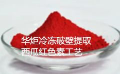 华炬新产品研究所技术咨询委员会科研人员现推荐一项冷冻破壁提取西瓜红色素工艺方法,该技术冷冻破壁提取西瓜红色素的方法是使西瓜瓤细胞内部的水液结冰膨胀,撑破细胞壁,解冻后红色素释放到溶液中,这样大大降低了红色素渗透细胞溶解到乙醇中的阻力,可使西瓜红色素的提取速度和提取率大大提高,是一种成本低、操作简单、产品安全性好的食用红色素提取方法,现将该冷冻破壁提取西瓜红色素工艺方法及实施例介绍如下供研究参考:(241311 223212)