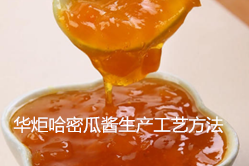 自古以来,哈密瓜就是深受人们喜爱水果。但哈密瓜的保鲜期短,且对保鲜的硬件设施要求较高,在长途运输中,坏果率高一直是困扰广大果农的一大难题,如果可以将哈密瓜在产地源头就进行一定的深加工,将极大的减少这种浪费。华炬新产品研究所技术咨询委员会科研人员现推荐一项哈密瓜酱生产工艺方法,该技术相对于现有技术的优点如下,1)本法所制哈密瓜酱,味道鲜美,适合人们烹调,佐餐,以及直接食用;2)哈密瓜原料来源丰富,成本低廉,利于进行规模化生产;3)哈密瓜酱的味道非常鲜甜,和外国人经常食用的草莓,苹果等果酱的味道很相像,因此在产品做强大做大后,非常易于出口。该方法不仅简单,容易操作,所制果酱,味道独特,营养全面,有着广阔的市场前景,现将该哈密瓜酱生产工艺方法及实施例介绍如下供研究参考:(241311 321335)