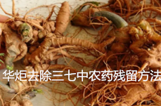 华炬科技新产品研究所技术咨询委员会科研人员现推荐一项去除三七中农药残留的方法,该技术方法对邻苯二甲酰亚胺类、有机磷、甲氧基丙烯酸酯类、苯并咪唑类、肉桂酸类内吸杀菌剂、拟除虫菊酯等农药具有良好的脱除效果,三七中农残降解率可以达50%以上。本方法实用性广,适用于三七不同部位包括根、茎叶、花的去除农残操作,现将该去除三七中农药残留的方法及实施例介绍如下供研究参考:(441231 671318)