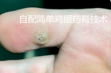 鸡眼是由长期摩擦和受压引起的圆锥形角质层增厚,有角质中心核,尖端深入皮内,基底露于外面。多见于青年人,好发于足底及足趾,患者行走或站立时引起剧烈疼痛。华炬新产品研究所技术咨询委员会科研人员现推荐一项自配简单鸡眼药膏技术,该技术是一种效果良好、治疗成本低廉,无任何毒副作用的外用膏剂,用于治疗鸡眼。不伤害鸡眼的周围组织,敷用2-3次后皮肤角质层软化,敷用4-6次即可脱掉鸡眼,且根治无复发。治疗鸡眼过程无痛苦,安全,无毒副作用,现将该自配简单鸡眼药膏技术及实施例介绍如下供研究参考:(411611 285304)