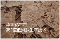 高F值低聚肽是一种重要的活性肽。是指一类由3~7个氨基酸残基所组成的低聚 肽,其中支链氨基酸(主要 指必需氨基酸亮氨酸、异亮氨酸和缬氨酸)的含量高于芳香族氨基 酸(主要指苯丙氨酸、酪氨酸和色氨 酸)。F值(Fischer值)是指支链氨基酸与芳香族氨基酸的摩尔浓 度比值;而支链氨基酸的含量(mol)高于芳香族氨基酸含量(mol) 的低聚肽,即称为高F值低聚肽。现代医学及营养学证明,高F值 低聚肽,是蛋白酶作用于蛋白质后形成的一种低分子活性肽,具有良 好的风味与丰富的营养并易被人体消化吸收,且具有防治肝性脑病、 改善蛋白质营养状况和抗疲劳作用等功效,富含亮氨酸的肽,还可 降低血清胆固醇浓度。由于高F值低聚肽的特殊生理功能以及广泛 的来源,近年来备受食品、医药界的关注。众所周知,作为原料,一般选择原则是资源丰富、蛋白含量高, 可提高附加值等,作为高F值产品对原料蛋白氨基酸组成更有特殊 要求。花生粕是植物油脂厂利用花生制取油脂后的一种下脚料,花 生中的蛋白质含量达24%~36%,相当于牛奶的8~10倍、牛肉和 猪肉的1~2倍、稻米的3~4倍,在所有农作物中,仅次于大豆, 且其蛋白质消化率高于大豆。虽然花生中蛋白质的F值只是1.26左 右,但是其蛋白质含量较高,这为酶解后提高其F值奠定了物质基 础。目前我国在花生粕的利用方面仍然处于低层次的程度,只有少 部分被利用生产粗蛋白(粉)、休闲小食品等,而大量的花生粕都作 为动物饲料原料,如何利用、开发花生蛋白,提升其附加值是当前 的研究热点和突破口,这些因素决定了花生蛋白是否能成为继大豆 蛋白之后的又一个新的优质蛋白质资源。末端处理转型向就地 解决的路线更能够满足我国目前的需求。