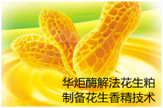 目前,花生香精均是利用花生仁直接制备的,而花生粕则作为废料 用于农田施肥或扔弃。再就是利用花生仁直接制备香精的粉碎工序是采 用传统的粉碎设备粉碎的,粒度大,粉体均匀性差。华炬新产品研究所技术咨询委员会科研人员现推荐一项酶解法花生粕制备花生香精技术工艺方法,该技术采用了 超微粉碎技术。超微粉碎技术是一种食品加工新技术,它是利用超微粉 碎机,通过一定的加工工艺流程,对物料进行碾磨、冲击、剪切等,将 物料粉碎至微米级甚至纳米级微粉的过程,与传统的粉碎、破碎、碾碎 等加工技术相比,超微粉碎过程对花生粕中原有的营养成分影响较小, 粉碎后的花生粕的粒度更加微小,粉体均匀性好。热反应技术制备的花 生香精,香味纯正,香气逼真,风味良好,香精主要用于食品、饮料以及化妆品等方面,现将该酶解法花生粕制备花生香精技术工艺方法实例介绍如下供研究参考:(211241 215307)